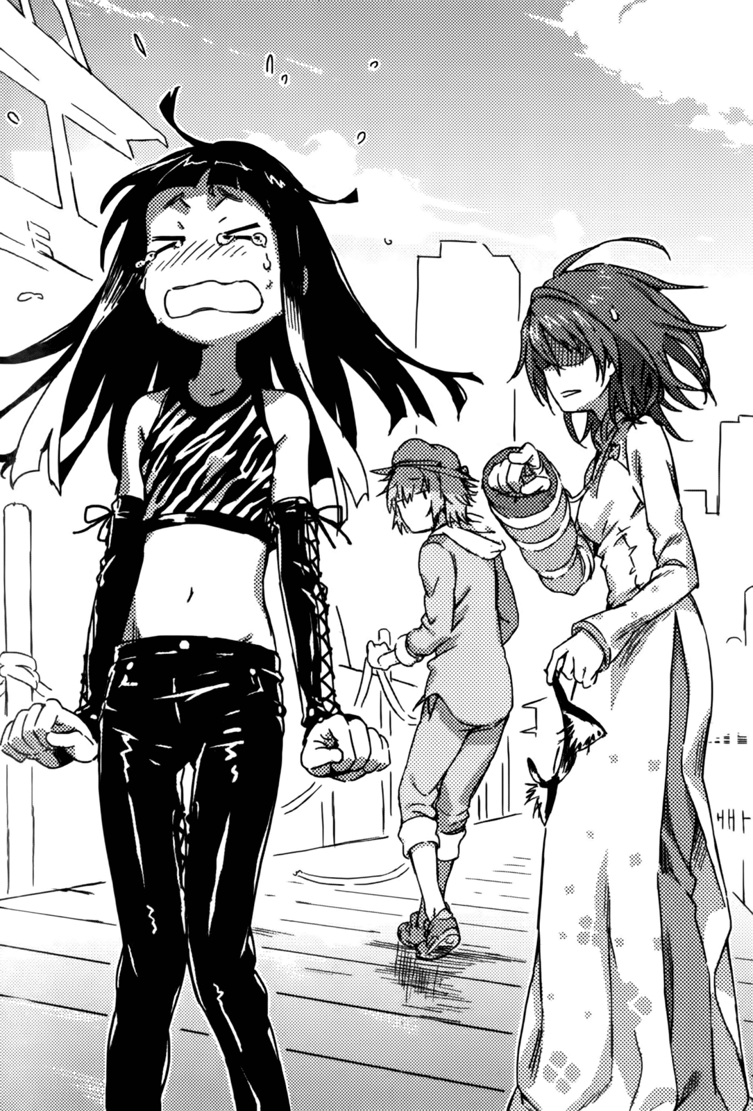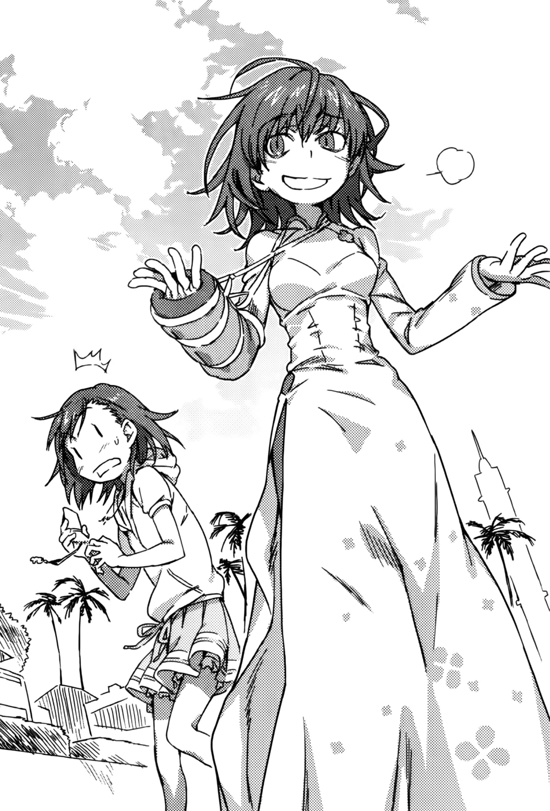 After the evacuation the group ends up splitting back into smaller groups with different people than before. Hamazura helped to lead people evacuating the airport was soon reunited with Kuroyoru who quickly realizes that with Misaka Worst she free to do as she wanted once again much to Hamazura's horror, this was short lived with Touma's sudden appearance.[22] Elsewhere Misaka Mikoto and Misaka Worst end up together after separated from their groups in the confusion, Misaka Worst then introduces herself as the Third Season of the clone project. Misaka Worst then begins to tease the original on her plan to purchase a set tag rings from Cupid Arrow for herself and Touma.[23] With Accelerator, Leivinia tries to interrogate Cendrillon for information, but is cut short by the interference of Saronia, who unbeknownst to the group, made up a ruse with Cendrillon to fool them regarding her real powers resulting in Cendrillon getting seriously injured, sensing the inevitability that Leivinia will go after her next.[24]
