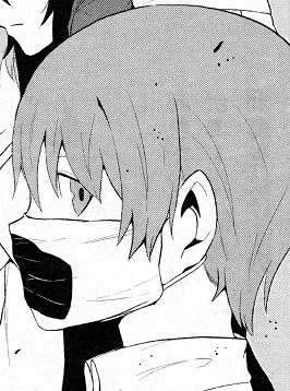 Leader participates in Scavenger's operation to track down the robotic doppelganger of Kuriba Ryouko, in order to improve Scavenger's situation after their previous failure.[12][13] After locating the doppelganger,[12][14] they proceed to the Shinasame University DNA Map Analysis Laboratory, only to find the doppelganger gone. However, Leader is confident that it won't escape her eye. They catch up with the doppelganger after she confronted the original Ryouko. After capturing the doppelganger, Leader sends Seike after the original Ryouko to verify that they hadn't switched places, then taunts the doppelganger over her appearance and possible desire to be a real human. In response, the doppelganger partially breaks free and grabs Leader's arm, snapping it. Fortunately, Leader is spared from having her eye plucked out when Naru attacks the doppelganger.[15][14]