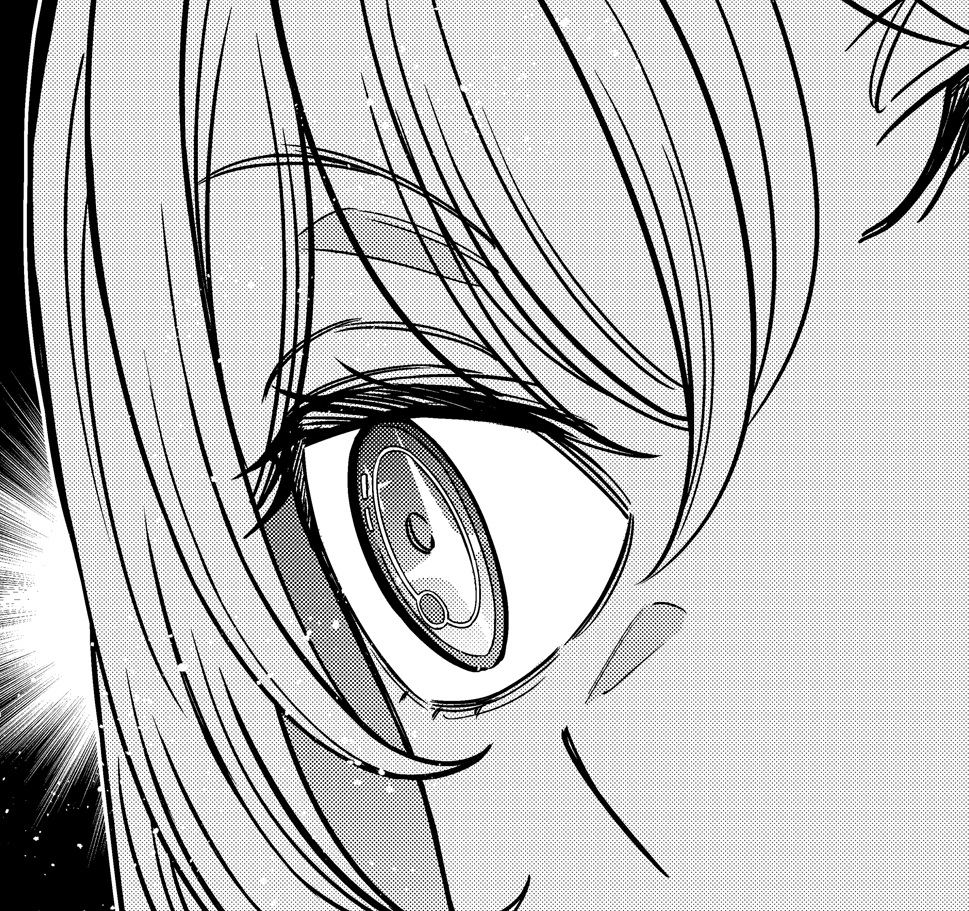 Shokuou wearing the Quick Iris in her right eye.