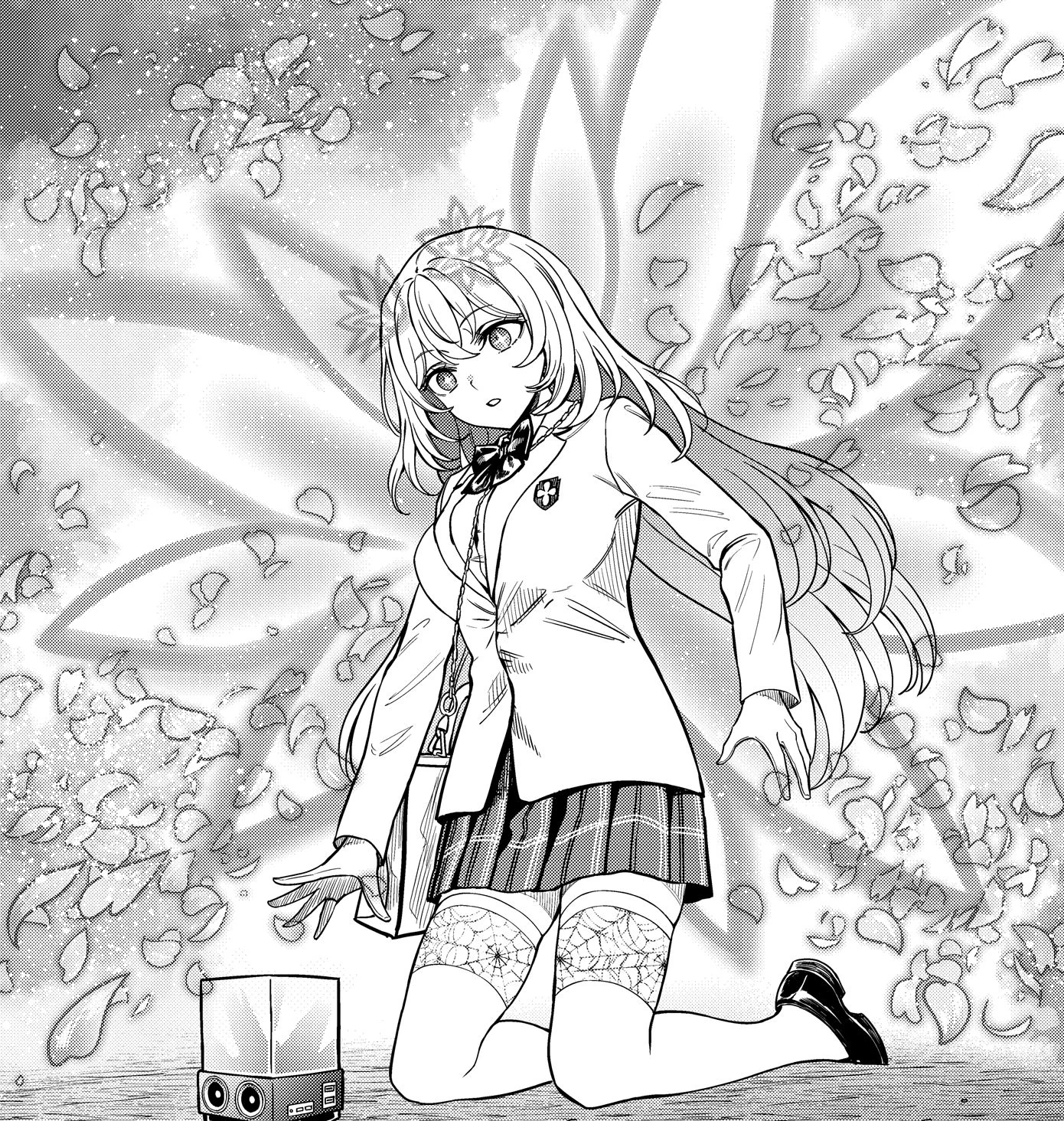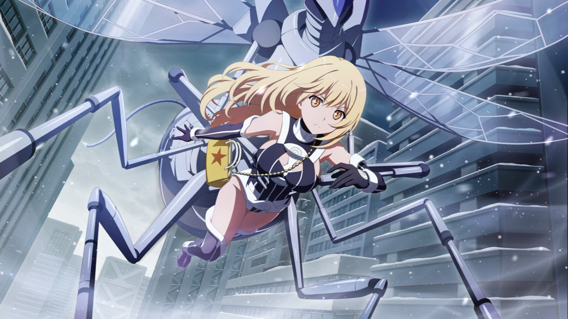 In this state with Kazakiri,[37][Notes 2][41] Shokuhou did not need to aim a remote or focus her conscious on a target in order to control them. With a shake of the giant flowers blossoming from her hair and clothing, glowing pollen and a sweet aroma was scattered around her, blown in the wind like a fine gold dust, which brainwashed everyone within a 5km radius of her.[37] This was compared to how motionless flowers lure in small animals and bugs with their scent and color to carry their pollen and seeds, or luring in predators of pests to indirectly attack them.[37] She was described as a mental hurricane that controls all around her with no effort.[37] Her petal wings could be used for offensive purposes, being strong enough to slice through a building,[39][42] moving and growing as required.[42]