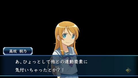 Index appears before the main menu comes up to the screen and will complain to the player if the player does not play the game for one day. If the player changes the date to 1 or 2 days before or ahead of the save data, Index will become suspicious but welcomes the player or bites the player. Kousaka Kirino from Ore no Imouto will also appear either she is rather suspicious or welcomes the player.