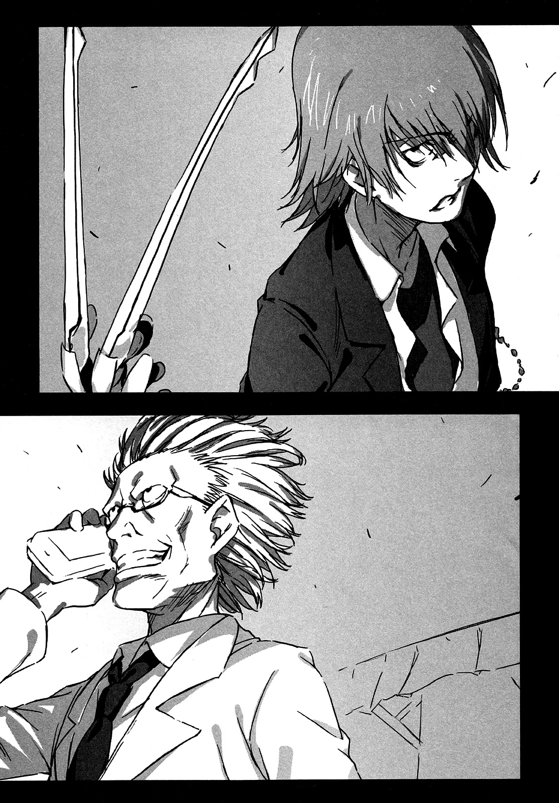 Meanwhile, Unabara finds himself in a challenging situation when he discovers that he borrowed the identity of Block's tactician Yamate. Right now, he is trying to keep himself out of suspicion, and it involves taking out one of their members, a girl named Tetsumou, whose ability is to peek into a person's identity.
