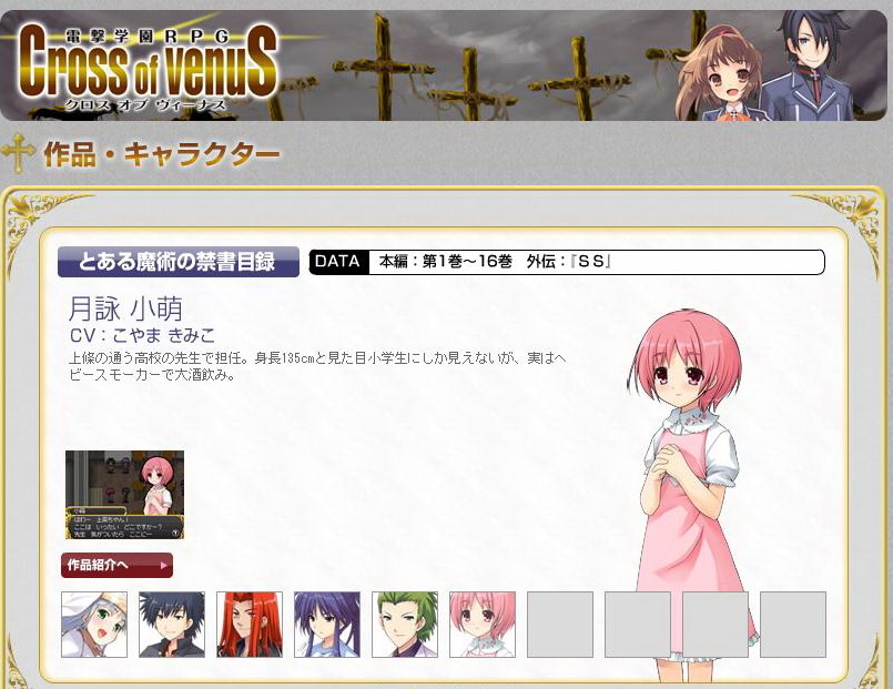 Although looking like a twelve-year-old child, she is one of the oldest adults known in the series. Beyond both her childish appearance and her demeanor lies a very competent teacher who cares for her students, and one of the few characters who knows Kamijou Touma well enough before his memory loss.